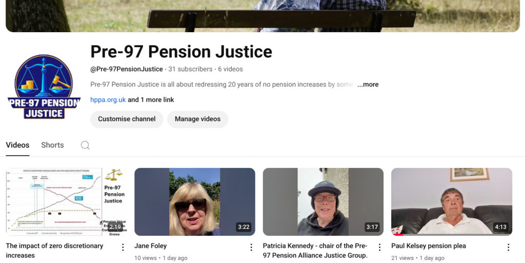 We announced the arrival of our new YouTube channel on Sunday. It’s called Pre-97 Pension Justice and you can CLICK HERE to visit. This is a new way to get people engaged with our campaign. Apart from your stories Patricia has created a video explaining the plight of our pensioners, brought on by the treatment we have received from […]
